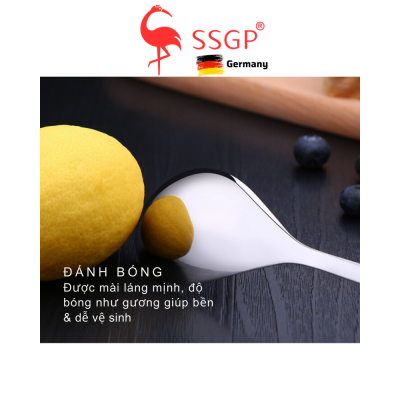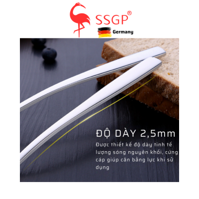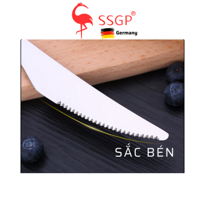 - Logo thương hiệu: Logo SSGP được khắc laser tinh xảo trên thân dao và nĩa, khẳng định chất lượng và nguồn gốc xuất xứ của sản phẩm, tăng thêm giá trị thương hiệu.