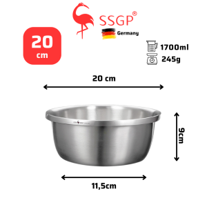 Thau chậu Frankfurt SSGP sở hữu thiết kế đơn giản mà tinh tế, với đường nét bo tròn mềm mại, tạo nên vẻ đẹp sang trọng và hiện đại cho không gian bếp. Bề mặt inox được xử lý tỉ mỉ, sáng bóng, tạo điểm nhấn ấn tượng cho căn bếp của bạn. Sản phẩm có nhiều kích thước khác nhau, từ 20cm đến 34cm, giúp bạn dễ dàng lựa chọn kích thước phù hợp với nhu cầu sử dụng.